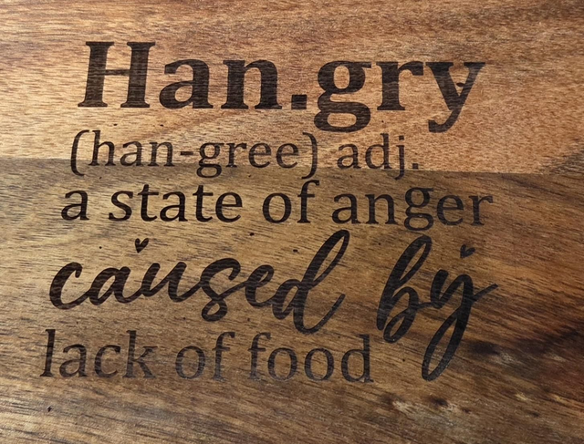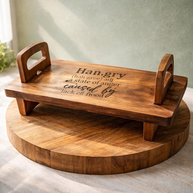 Add a touch of humour to your kitchen with this handcrafted wooden serving board featuring the playful “Hangry” definition design. Perfect as a rustic food platter, breakfast tray or kitchen décor piece, this sturdy wooden board with handles makes a unique gift for food lovers, housewarmings or birthdays. Ideal for serving snacks, sharing platters and nibbles in style while bringing personality to your dining table.
