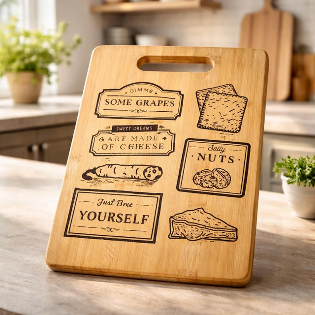 Serve in style with our bamboo serving board, crafted from natural wood and finished for everyday durability. Featuring a charming, witty quote, it brings personality to your table while offering the perfect surface for cheeses, snacks, and sharing platters. A practical yet playful addition to any kitchen or gift set.